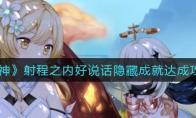 《原神》游戏中射程之内好说话是2.4新增隐藏成就之一,那么今天小编就给大家介绍一下原神射程之内好说话隐藏成就达成攻略,有需要的小伙伴不要错过了。 《原神》射程之内好说话隐藏成就达成攻略 本篇我们继续来一起做隐藏成就~在常夜状态下的图示位置,我们可以找到一个名叫「明石」的残影。 原来这个老哥是搞陆鳗鳗养殖的,为了分辨肉眼难以分辨的鱼苗,去问了弓箭手怎么锻炼视力,结果却变成了在这里先从大的靶子开始练习,结果练了很久也射不中,说着问我们要不要也来试试。那我们肯定是要试的,给他露一手看看。这里我们先在队伍里配置一名弓箭角色,接着站到黄色光柱里,就能看到远处的目标了。 这里各位旅行者多试几次就可以了,总能射到的,也可以参照下图的瞄准角度,蓄满力发射即可射中。 射中目标以后再和明石对话,对话结束后就会给我们一个珍贵的宝箱,