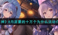 原神游戏中的8月派蒙的十万个为什么活动上线了,相信还有很多小伙伴不是很清楚8月派蒙的十万个为什么活动是什么。接下来小编就给大家介绍一下原神8月派蒙的十万个为什么活动介绍,感兴趣的小伙伴们一起来看看吧。《原神》8月派蒙的十万个为什么活动介绍活动地址:点击参加 〓活动时间〓 2021/08/27 11:00~2021/08/29 23:59(每日4点刷新)〓活动说明〓 活动期间,冒险等阶≥10级的旅行者可每日参与本活动。每次挑战答题需回答10道单选题,答对可获得奖励,答错没有奖励,完成任务可获得继续挑战的机会。活动开启期间,累计答对20道题即可活动专属头像框(30天)〓活动奖励〓 每答对1题,可获得摩拉*5000单日最多可领取10道题的奖励〓奖励发放〓 游戏内邮件(发放可能存在一定延迟)邮件有效期为7天,请旅行者及