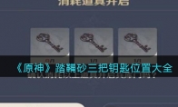 原神踏鞴砂三把钥匙在哪里呢?很多小伙伴都想知道原神踏鞴砂三把钥匙在什么地方可以找到,下面小编就给大家带来了《原神》踏鞴砂三把钥匙位置大全介绍,一起看看吧!《原神》踏鞴砂三把钥匙位置大全第一把在最南边的桥头第二把在御影炉心附近屋子的屋顶。第三把北边小平台的烟囱底,从上面进去还有个神曈。跟着任务提示一直找人对话就可以了,只有破除保护罩需要一点点操作,用地图自带的大炮轰就完事了,角度啥的慢慢调整就行。每个大炮旁边都有雷种子,带上就可以开炮了。需要注意的是,有个地图上标记出来的秘境也是用大炮轰出来的,目前已经做完一阶段,二阶段应该是有前置任务或者其他条件。由于雷环境持续掉血,这里不推荐强行探索,反应炉最下方中央平地的挑战是三只雷兜王,打完给个华丽宝箱。以上就是3DM小编整理带来的《原神》踏鞴砂三把钥匙位置大全攻略,大家
