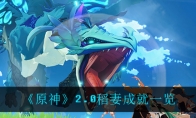 原神已经正式更新了2.0稻妻城版本,很多小伙伴都很想知道在稻妻城版本中都有什么成就,今天小编给大家带来了《原神》2.0稻妻成就一览,感兴趣的小伙伴一起来看看吧,希望可以帮助到大家。《原神》2.0稻妻成就一览① 其他&世界任务成就1、妖鬼狂言百物语集齐全套《鹦巷物语》2、布武雷国稻妻的声望等级达到8级。3、山田五的木槌多次识破妖狸的法术。世界任务「深林狸嗍子J4、「鲸井御殿流手鞠术」陪鲸井小弟玩「手鞠游戏」。世界任务「手鞠游戏J5、本朝手鞠戏小传其他玩家参加了你所设置的「手鞠游戏」。PS:完成世界任务「手鞠游戏J后可设置6、派蒙的幸运日!在鸣神大社,抽中「大吉」的签文。7、诸事不宜...在鸣神大社,抽中「大凶」的签文。8、地宫传奇.才怪咧!发掘失落记忆的冒险本身,又何尝不是宝藏呢?9、SYUUMATSU