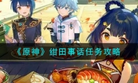 原神游戏中的绀田事话任务是新上线的活动任务,相信还有很多小伙伴不是很清楚绀田事话任务怎么做。接下来小编就给大家介绍一下原神绀田事话任务攻略,感兴趣的小伙伴们一起来看看吧。《原神》绀田事话任务攻略【任务攻略】 开始在鸣神岛传送点位置,与巫女 花散里 交互,使用雷主技能攻击狐狸神像,触发任务到绀田村后与村长对话,要求与村民交互寻找信息先找到双叶,得知沟渠有线索,可以找小猛寻找下一个线索之后来到房顶找到小猛(旁边柱子有雷神瞳),找到村口小破车线索随后与 柴门惠理 对话得知村长后面院里里枯井有线索找到后即可找村长,交出证据!先给装摩拉的袋子,后交付 水中找到的货物袋,最后是小破车那边找到的货单村长承认后即可上房顶拿其笔记 找到屋舍残骸击败小怪后得到钥匙,现在我们可以到井下了 直接跳下去,主要别摔死旁边有个雷巨石,可用大
