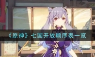 原神游戏中一共有七个国家,七国的开放是有顺序的,相信还有很多小伙伴不是很清楚七国开放顺序表是什么。接下来小编就给大家介绍一下原神七国开放顺序表一览,感兴趣的小伙伴们一起来看看吧。《原神》七国开放顺序表一览【顺序表一览】 七国开放顺序:蒙德→璃月→稻妻→须弥→枫丹→纳塔→至冬 1.0版本:蒙德(风)/璃月(岩)2.0版本:稻妻(雷)3.0版本:须弥(草)4.0版本:枫丹(水)-水神双子5.0版本:纳塔(火)6.0版本:至冬国(冰)7.0版本:坎瑞亚以上就是小编给大家带来的《原神》七国开放顺序表一览,更多游戏攻略请持续关注3DM手游网!