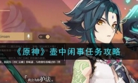 原神游戏中的壶中闲事任务是新上线的任务,相信还有很多小伙伴不是很清楚壶中闲事任务怎么做。接下来小编就给大家介绍一下原神壶中闲事任务攻略,感兴趣的小伙伴们一起来看看吧。 《原神》壶中闲事任务攻略【任务攻略】 进入游戏,打开任务列表,选择壶中闲事任务。 打开背包,装备尘歌壶,进入尘歌壶。 找到阿圆,和他对话。 对话完毕,任务完成,就获得了洞天关蝶,任务就完成了。 以上就是小编给大家带来的《原神》壶中闲事任务攻略,更多游戏攻略请持续关注3DM手游网!