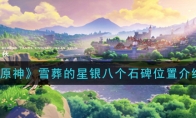 《原神》手游中新版本的武器雪葬的星银如果要获得的话就要收集八个石碑,那么雪葬的星银8个石碑在哪里呢?下面就是3DM小编给大家带来的《原神》雪葬的星银八个石碑位置介绍,感兴趣的小伙伴们赶紧过来看看吧!>>>>>>小编推荐阅读:《原神》2020礼包兑换码大全 《原神》雪葬的星银八个石碑位置介绍第一个石碑、湖中小岛后方的石桥上第二个石碑、在祭祀之匣边上有一个遗迹重机,在其后方便是第二个石碑第三个石碑、七天神像下面一层的密室洞窟中第四个石碑、来到眠龙谷左边的第一个传送点,解开此地的机关后来到下方,便可找到第四个石碑此外,在附近还有着第二个坚冰碎片,找齐附近温暖仙灵后就可以解开屏障。其中有一个温暖仙灵藏在小雪堆中。第五个石碑、星荧洞窟左侧传送点,有这样一个方形场地,破解完机关后,在左下