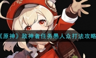 《原神》手游中敌神者任务是1.2版本的新增任务,有很多小伙伴表示想知道敌神者任务愚人众怎么打。下面就是3DM小编给大家带来的《原神》敌神者任务愚人众打法攻略,感兴趣的小伙伴们赶紧过来看看吧!>>>>>>小编推荐阅读:《原神》2020礼包兑换码大全 《原神》敌神者任务愚人众打法攻略正常打法:先杀水胖子,水胖子是奶妈,会给其他人回血加攻击。不好秒就带个凯亚,一是冻水胖子好去杀其他几个,二是冰伤破雷盾速度快,后面杀雷锤方便逃课打法:仇恨分离,换远程角色,盯着一只猛打,然后边打边跑,时间长了另外两只会被拉脱战自己回去,这时候只处理一只就方便多了。另外两只也用同样的方法解决就行,缺点是打得慢而且不一定分离成功。以上就是3DM小编整理带来的《原神》敌神者任务愚人众打法攻略的全部内容了,更