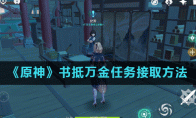 《原神》游戏中书抵万金任务在哪接取?原神游戏中开启全新的1.1版本,而书抵万金任务就是全新的1.1版本中加入的,很多小伙伴可能不知道新任务怎么接取,那么接下来小编为大家带来《原神》书抵万金任务接取方法,一起来看看吧。小编推荐阅读:《原神》世界任务攻略 《原神》书抵万金任务接取方法1、想要接取该任务,首先前往璃月港书店位置。2、然后和纪芳进行对话,即可接取任务。 3、玩家接取到任务后,完成要求即可达成任务。 以上就是小编整理的关于《原神》书抵万金任务接取方法的全部内容,更多游戏攻略请持续关注3DM手游网!