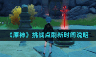 《原神》游戏中挑战点多久刷新一次?在原神游戏中,玩家会遇到很多挑战任务,完成挑战任务需要消耗玩家的挑战点,很多小伙伴表示不知道挑战点的刷新机制是什么,那么接下来小编为大家带来《原神》挑战点刷新时间说明,一起来看看吧。《原神》挑战点刷新时间说明1、首先说明,游戏中的挑战点是不属于刷新道具的,也就是说激活完成一个就少一个。2、而且游戏中共有34个挑战点,玩家挑战完成后将会变成石柱,后续将无法自动刷新。3、而且游戏中挑战点宝箱和地灵龛宝箱是一样的,都是玩家拿到一个就少一个。4、在游戏中这两个宝箱中的奖励都是非常丰厚的,所以无法自动刷新。5、目前游戏中可以自动刷新的只有普通宝箱,而且刷新时间非常久,需要两三天刷新一次。总结: 挑战是不会刷新的,除非后续大版本更新,给他重置次数了。考虑到宝箱奖励不受世界等级影响,这种宝箱