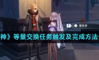 《原神》游戏中等量交换任务怎么触发?在原神游戏中,有很多任务需要玩家触发后才能接取完成,其中等量交换任务很多小伙伴不知道怎么触发,那么接下来小编为大家带来《原神》等量交换任务触发及完成方法介绍,一起来看看吧。 《原神》等量交换任务触发及完成方法介绍一、任务奖励 玩家完成任务可以获得100经验、3W摩拉、4大经验书。二、触发地点 玩家在和维克多对话前,需要完成一个前置的愚人众发布的每日任务才能触发。 三、任务流程 1、先去猎鹿人买特产。沙拉会询问你需要特产的人来自哪里。一共有两个选项:至冬国和愚人众。如选择至冬国,需要做一份满足沙拉,若已有该物品可直接提交。2、然后去找花店的店主。店主两个问题,其一:蒲公英是不是花?答:是花。随后去酒馆和酒保查尔斯对话,你将依其安排取东西后收到查尔斯的特色调味酒。3、最后提交给维