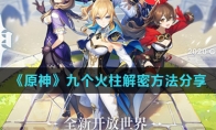 《原神》游戏中九个火柱怎么解谜?游戏中有着非常多需要玩家解谜的地方,其中九个火柱难度还是非常大的,很多玩家表示不知道怎么解谜,那么接下来小编为大家带来《原神》九个火柱解密方法分享,一起来看看吧。 《原神》九个火柱解密方法分享 我们在下图所示的地方就能够看到这九个火柱子(火炬)。具体坐标位于渌华池的北方,翠玦(读jue)坡的东南方向。如下图所示: 然后我们就能够看到下图所示的九个火柱子。一个一个点亮是没有效果的,不管怎么点亮画面上都会灭掉。我们仔细发现其实可以看到草地上有一个三角形。点亮三角形的三个角就能够解锁谜题了。在下图中给大家用红圈都框起来了,各位直接射就行了。 以上就是小编整理的关于《原神》九个火柱解密方法分享的全部内容,更多游戏攻略请持续关注3DM手游网!