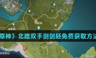 《原神》游戏中北路双手剑剑胚怎么免费获得?游戏中拥有很多任务,其中北路双手剑是一个非常有趣的任务,很多玩家表示不知道怎么完成,那么接下来小编为大家带来《原神》北路双手剑剑胚免费获取方法,一起来看看吧。 《原神》北路双手剑剑胚免费获取方法1、首先这个任务是玩家在做主线时会遇到的任务。 2、接下来说说任务的流程,玩家来到达达乌帕谷湖中心。3、然后就能看见3个罩子罩住的宝箱。4、这里小编已经拿到过了,所以没有显示。 4、然后玩家和旁边的NPC对话,NPC会告诉玩家前往周围三个丘丘人部落解锁封印。 5、这里小编为大家标记出来具体的位置,红圈中就是他们部落的位置了。6、而且游戏中每个部落都有相对应的属性开关,当然需要打一波怪。 7、这个位置在下方左侧湖中心,具体位置请看下图。 8、然后右侧的石头环中心。 9、玩家打完全