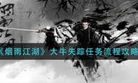 在烟雨江湖游戏中很多玩家还不清楚,大牛失踪任务的完成流程是什么。接下来就让小编给大家带来《烟雨江湖》大牛失踪任务流程攻略,感兴趣的小伙伴们一起来看看吧。 《烟雨江湖》大牛失踪任务流程攻略一、落霞镇 打听:孙红梅处打听得知大牛失踪,去到大牛家查看,然后去找老妇打听去向,再到平民那里寻人。山洞:在酉时到(11,38)搜索进入山洞,在山洞(1,3)处查看引发一波战斗,此人是药王谷叛徒离道。孙红梅:战斗胜利后去找孙红梅。两个选项帮他解脱和是遍访名医。二、姑苏 药王:到姑苏药店找华十三打听,然后去药王谷找药王求助,回落霞镇找孙红梅,等待10分钟后回药王谷把大牛交给药王,再次等待5分钟收到飞鸽传书,找药王对话,帮忙寻找离道的消息去青城山寻找佛印小红莲。枯骨门副本:子时到青城山在231处找到佛印小红莲点击触发战斗打败牛必带回
