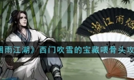 《烟雨江湖》手游的西门吹雪的宝藏是一个任务,相信还有很多小伙伴不是很清楚西门吹雪的宝藏怎么喂骨头。下面小编给大家带来的是《烟雨江湖》西门吹雪的宝藏喂骨头攻略,感兴趣的小伙伴们一起看看吧!>>>>>小编推荐:《烟雨江湖》2021礼包兑换码大全 《烟雨江湖》西门吹雪的宝藏喂骨头攻略想要了解喂狗任务,就是要了解该任务的开启条件、狗的位置和喂狗坐标。【任务开启条件】 1、玩家是可以通过主线任务【水落石出】打败张雄之后,才会开启;2、主线是藏在九儿家中的时候,玩家是必须要在进度条内救了九儿才行,这样是才能喂狗,不然狗都不会理你。【狗的位置】 狗的位置是在洛阳菜市场南边,西门吹雪是小月的狗。【喂狗坐标】 狗的坐标总共是出现五次。第一次是在第一次离开的时候是可以看到狗的坐标的,这个是比较好找,狗