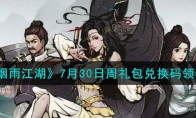 《烟雨江湖》手游不定时会更新些小礼包,8月2日周礼包兑换码是什么,在哪里兑换领取呢?下面给大家带来的是《烟雨江湖》8月2日周礼包兑换码及领取地址介绍,想要领取福利的小伙伴们速来领取吧!>>>>>小编推荐:《烟雨江湖》2021礼包兑换码大全 《烟雨江湖》8月2日周礼包兑换码兑换码:yyjhyyds 礼包兑换码在哪兑换1、点击进入游戏2、点击游戏页面右上角的【菜单】功能。3、点击【输入激活码】功能,在这里输入获得的激活码4、点击【确认】即可。以上就是小编整理的关于《烟雨江湖》2021年8月2日周礼包兑换码及领取地址的全部内容。更多游戏攻略请持续关注3DM手游网!