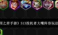 云顶之弈手游S13哨兵烈娜塔阵容怎么玩?这个问题让很多的玩家都很头疼,所以今天小编就为大家带来了云顶之弈手游S13哨兵烈娜塔阵容玩法介绍,那有需要的小伙伴快来和小编一起看看吧。《云顶之弈手游》S13哨兵烈娜塔阵容玩法介绍一、阵容构成俄洛伊、玛尔扎哈、烈娜塔、芮尔、维克托、辛吉德、蕾欧娜、洛里斯、兰博二、强化推荐优选:哨兵之徽、护盾猛击、星夜+次选:硬化护盾、导师制||、潘朵拉的备战席、潘朵拉的装备、金色炊具分析:开局星夜和哨兵转最强,其次是潘朵拉变神装和备战席D3星。三、异常突变芮尔:巨人体型芮尔:根深蒂固烈娜塔:绝不浪费四、装备选择1、主C装备烈娜塔必备青龙刀、大天使、第三件纳什之牙或者科技枪。2、主T装备芮尔必备石像鬼板甲、狂徒其他装备捡垃圾。五、运营思路搜牌节奏:3-2升6人口搜牌,先搜出两星芮尔和烈娜塔