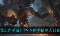 云顶之弈即将正式更新5.5赛季,在新赛季中新增了很多英雄,也对英雄的技能进行了修改,很多小伙伴都很想知道稻草人的技能是什么,今天小编给大家带来了《云顶之弈手游》S5.5赛季稻草人技能介绍,感兴趣的小伙伴一起来看看吧。《云顶之弈手游》S5.5赛季稻草人技能介绍稻草人羁绊:复生亡魂、丧尸、秘术法力值:50/125技能(自翻):费德提克在短暂延迟后,传送到目标身后并在周围召唤一个持续4秒的鸦群,每秒对范围内的所有敌人造成150/225/500魔法伤害。每有一个敌人在鸦群内阵亡,鸦群持续时间就会延长1秒,并治疗费德提克,数值为敌人15%/20%/25%的最大生命值。以上就是小编整理的关于《云顶之弈手游》S5.5赛季稻草人技能介绍的全部内容,更多游戏攻略请持续关注3DM手游网!