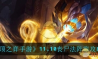 云顶之弈手游最近新更新了11.10版本,很多小伙伴都很想知道在新版本中的丧尸法应该怎么玩,今天小编给大家带来了《云顶之弈手游》11.10丧尸法阵容攻略,感兴趣的小伙伴一起来看看吧,希望可以帮助到大家。《云顶之弈手游》11.10丧尸法阵容攻略阵容组成:努努、大眼睛、瑞兹、拉克丝、芮尔、三只手、火男、婕拉装备推荐:大眼睛:青龙刀、科技枪、法爆努努:黑暗冰心、黑暗反甲、狂徒瑞兹:圣杯、黑暗圣杯阵容站位:以上就是小编整理的关于《云顶之弈手游》11.10丧尸法阵容攻略的全部内容,更多游戏攻略请持续关注3DM手游网!