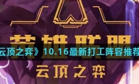 《云顶之弈》游戏中迎来全新的10.16版本,在新版本中很多英雄和羁绊都惨遭削弱,那么小伙伴们就要问了,新版本中什么打工阵容最强?毕竟我们玩的所有阵容都需要前期打工仔,那么接下来小编为大家带来《云顶之弈》10.16最新打工阵容推荐,一起来看看吧。 《云顶之弈》10.16最新打工阵容推荐3宇航员4重装2秘术过渡 这是一套传统的以巴德为核心的阵容过渡拉9,这个阵容适合前期2- 5之前能够拿到巴德这个英雄,利用4重装的坦度+3宇航员羁绊给巴德生孩子,这里宇航员使用巴德、泰坦、提莫这三个,千万别用纳尔这玩意属于假赛王。后面补充索拉卡或者卡尔玛凑2秘术就可以了,注意场下一定要留海盗的牌,特别是男枪。推荐巴德装备:蓝BUFF/青龙刀/复活甲+青龙刀+分裂弓 机甲法 机甲法中期过渡能力也是非常的强悍,这个阵容适合在3-3之前