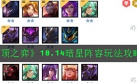 《云顶之弈》游戏中迎来全新的10.14版本,很多小伙伴不知道在新版本中玩什么阵容上分,其实大家都忽略了星神机甲阵容,其实在这个版本中星神机甲阵容非常强势,后期成型后不弱于任何阵容,那么接下来小编为大家带来《云顶之弈》10.14星神机甲阵容玩法攻略,一起来看看吧。 《云顶之弈》10.14星神机甲阵容玩法攻略 由于新版中很多小伙伴都去玩暗星阵容了,没人抢机甲阵容卡牌,所以玩家很容易就能拿到想要的机甲卡牌。新版本星神机甲无敌 盖伦无尽泰坦水银 打女团简直不要太简单,机甲首先做水银和泰坦。无尽后拿 双泰坦也可以 最强的还是无尽泰坦水银 泰坦一个可以增加普攻还有大招一倍伤害 两个就是两倍。基本上又是一个稳烂分阵容,阵容由洛 赵信 寒冰 露露(霞) 皇子加三机甲组成 如果选秀拿到星神转给皇子可以8级下一个星神 建议下赵信上