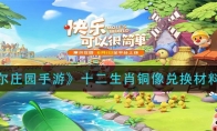 在摩尔庄园手游中我们可以收集材料在神秘商店对啊混十二生肖,很多小伙伴都很想知道十二生肖都需要什么材料才能兑换,今天小编给大家带来了《摩尔庄园手游》十二生肖铜像兑换材料攻略,感兴趣的小伙伴一起来看看吧。《摩尔庄园手游》十二生肖铜像兑换材料攻略位置:npc大力,神秘商店陈列室材料一览:鼠:冰淇淋鼠×20(浆果丛林,全天)牛:牛奶×100虎:木头×1000兔:草×800龙:绿鲤鱼×50(家园/雪山,全天)蛇:樱花蛇×80(神秘湖,白天)马:变异斑马鱼×50(浆果丛林,全天)羊:羊毛×50猴:奇异果×200鸡:鸡蛋×300狗:骨头×80猪:小麦×260以上就是小编整理的关于《摩尔庄园手游》十二生肖铜像兑换材料攻略的全部内容,更多游戏攻略请持续关注3DM手游网!