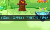 摩尔庄园手游下雨了怎么做?《摩尔庄园手游》中很多玩家不知道下雨了要做些什么,那么今天小编就给大家介绍一下摩尔庄园手游下雨了玩法攻略,有需要的小伙伴不要错过了。《摩尔庄园手游》下雨了玩法攻略下雨时间:时间:2021/06/07/早上08:00—16:00(8小时)下雨后需要做的事情:1.在家里种田不需要浇水,但是无法去好友家浇水获得好感度。2.下雨中,在丛林、城堡、开心农场的草地上会出现三种蘑菇,摘取后可以在餐厅做成食物。3.下雨前,把动物赶到屋子里,淋雨会降低动物的好感度哦4.钓鱼:每次下雨后,会出现下雨的限定鱼类,抓紧时间钓鱼哟~(白天或夜晚的鱼类)ps:电视摆放在小屋里,可以查看天气预报呀!以上就是《摩尔庄园手游》下雨了玩法攻略,更多游戏攻略请持续关注3DM手游网!