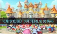 《摩尔庄园》手游公测后,官方会时不时给玩家发放一些兑换码用来兑换奖励,想必有很多小伙伴不太清楚《摩尔庄园》2022年3月3日礼包兑换码是什么,怎么领,下面小编给大家带来《摩尔庄园》3月3日礼包兑换码领取地址,想要领取福利的小伙伴们一起来看看吧。>>>>小编推荐阅读:《摩尔庄园》2022礼包兑换码大全 3月3日礼包兑换码领取地址【兑换码】 汉青阿福号告别【兑换方法】 点击游戏左上角的设置,将复制到的兑换码,粘贴到兑换码的对话框中,点击兑换即可成功兑换奖励。以上就是小编整理的关于《摩尔庄园》3月3日礼包兑换码领取地址的全部内容,想获得更多相关游戏攻略可以关注3DM手游网。