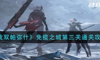 在战双帕弥什游戏中很多玩家还不清楚,免疫之城第三关的通关方法是什么。接下来就让小编给大家带来《战双帕弥什》免疫之城第三关通关攻略,感兴趣的小伙伴们一起来看看吧。 《战双帕弥什》免疫之城第三关通关攻略第1天:不分配食物 废墟-2 医疗站+1 补给站+1第2天:不分配食物 前哨站+2 住宅+2第3天:不分配食物。探索:上下两位置。 第4天:分配所有食物(下同,全略)。探索:回归。 事件:接受。后续事件告知死讯开启支线。第5天:探索:七点钟方向破败的港口 四点钟方向安静的防空洞。(使用与回归的队伍随意,下同,略)第6天:探索:五点钟方向峡谷林地 十一点钟方向工业园区。第7天:探索回归。第8天:医疗站+2 补给站+2。探索:十点钟方向倒塌的公馆 三点钟方向无人的战壕。 第9天:探索:一点钟方向废弃集市 九点钟方向河边营