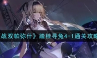 《战双帕弥什》游戏中的踏桂寻兔是新上线的活动关卡,相信还有很多小伙伴不是很清楚踏桂寻兔4-1怎么过,今天小编就给大家分享一下战双帕弥什踏桂寻兔4-1通关攻略,有需要的小伙伴不要错过了。 《战双帕弥什》踏桂寻兔4-1通关攻略【通关攻略】 1、4-1三星通关需要玩家在7回合、10回合内通关,并且消除所有库洛洛。2、库洛洛会被构造体、被身边的死亡吓走,消除关键库洛洛,重点就会开启,身上带着高亮标志的,就是关键的库洛洛。3、4-1通关步骤为:下右上左下左上。>>>>点击查看【踏桂寻兔】其他关卡的通关攻略 以上就是小编整理的《战双帕弥什》踏桂寻兔4-1通关攻略,更多游戏攻略请持续关注3DM手游网!