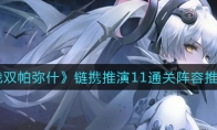 战双帕弥什链携推演11怎么通关?《战双帕弥什》游戏中链携推演11很多玩家不知道怎么搭配阵容,那么今天小编就给大家介绍一下战双帕弥什链携推演11通关阵容推荐,有需要的小伙伴不要错过了。《战双帕弥什》链携推演11通关阵容推荐10W伤害推荐阵容万事·明觉/任意(蓝色站位)+丽芙·流光(红色站位)+库洛姆·荣光(黄色站位)携带增益:急速必杀 切换增益 激化回复在完成两个限时条件以后,我们就不用在乎时间问题了~安安心心准备输出即可。万事开局进场,切库队开核心+超算(4组三消即可开大),这波尽量打到2-3波,为下次做准备。而后切出流光,持续站场攒大招能量。等大招能量够了,就可以开始操作了。流光开启大招,切荣光进场核心、闪避、超算、三消、大招+QTE。这样伤害是在100700这样~要注意QTE时机~ 以上就是《战双帕弥什》链