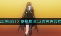 战双帕弥什链携推演12怎么通关?《战双帕弥什》游戏中链携推演12很多玩家不知道怎么搭配阵容,那么今天小编就给大家介绍一下战双帕弥什链携推演12通关阵容推荐。《战双帕弥什》链携推演12通关阵容推荐推荐阵容比安卡·真理(蓝色站位)+丽芙·流光(红色站位)+库洛姆·荣光(黄色站位) 携带增益:急速必杀 切换增益 激化回复注意,本关敌人很脆,伤害也不高。库洛姆进场核心,左右挑一边去;核心结束时切流光锁怪,清手上的信号而后真理进场输出可以蹭闪进核心,伤害尽量用黄球做回避,没法打核心进再度切换库洛姆重复流程,两轮即可完成击杀~ 以上就是《战双帕弥什》链携推演12通关阵容推荐,更多游戏攻略请持续关注3DM手游网!
