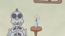 《史上最坑爹的游戏8》第十九关玩法攻略,这一关我们需要利用好场景中的这只小老鼠,它可是过关的重点。点击它将它赶到老王后面,然后老王就会移动,接着按下后面的开关就可以变成骷髅把老王吓死。