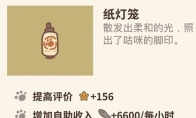 在动物餐厅手游中纸灯笼有什么作用呢?游戏中有很多的道具,纸灯笼这款游戏里会有各种不同的道具,纸灯笼会散发出柔和的光,那么具体有什么作用呢?想知道的小伙伴就跟随小编一起来看看吧。纸灯笼简介:散发出柔和的光芒,照出了咕咪的脚印。纸灯笼作用介绍:1、提高评价加156星;2、增加自助收入6600小鱼干每小时;解锁条件:评价必须达到1800星以上就是小编整理的动物餐厅纸灯笼作用介绍,想知道更多相关资讯攻略的请关注3DM手游网。