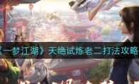 《一梦江湖》游戏中天绝试炼老二很多玩家不知道怎么打,那么今天小编就给大家介绍一下一梦江湖天绝试炼老二打法攻略,有需要的小伙伴不要错过了。 《一梦江湖》天绝试炼老二打法攻略1. 狂怒:狂怒状态下boss血条上会出现一道红色的能量条,需要队友轮流敲木鱼,仇恨不敲,单奶奶妈也最好不敲。另外,如果Boss离木鱼太近(贴着木鱼),敲木鱼会被打断,太远(在对面的空气墙)则敲木鱼的玩家看不见boss的技能提示。2. 金身:层数在boss血条下方可以看到。开局时可以破金身交绝学爆发,打得更快;当boss提示要交控制时可以破金身,但是破完后不要一起放绝学,不然输出太快会又来一轮;boss没有提示交控时也会有金身,和狂怒叠在一起伤害为0,此时应安排队友敲木鱼,选择性的放控制技能(也可以不放)。3. 擒拿:奶妈注意治疗被擒住的玩家,