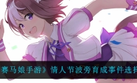 《赛马娘手游》中歌剧作为2星已经上线了,很多玩家想知道她的育成事件怎么选,那么今天小编就给大家介绍一下赛马娘手游歌剧育成事件选择推荐,有需要的小伙伴不要错过了。 《赛马娘手游》歌剧育成事件选择推荐 新年の抱負走れ走れ、凧揚げ対決!——根性+10粘ったもん勝ち、けん玉対決!——体力+20笑っちゃ負けよ、福笑い対決!——技能Pt+20初詣まずは体力を温存しよう!——体力+30せっかくなので、フルコース!——全属性+5新春、敵情視察!——技能Pt+35夏合宿(2年目)にてじゃあ、島を1周泳いでムキムキ!——力量+10それなら限界マラソンで精神統一——根性+10ダンスレッスン遊びとダンスを組み合わせるのは?——根性+10教えるのを通じてダンス技能アップ!——智力+10シュビビッと解決!君のやり方を続けてみよう——力量+