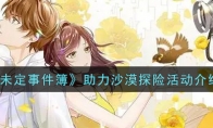未定事件簿游戏中助力沙漠探险活动是即将上线的新活动,相信还有很多小伙伴还不太清楚助力沙漠探险活动内容是什么。下面小编就分享一下未定事件簿助力沙漠探险活动介绍,感兴趣的小伙伴一起来看看吧。 助力沙漠探险活动介绍【活动时间】 2021年9月29日更新后-10月9日04:00【活动内容】 活动期间,每日登录游戏累计可得【女神之泪·限时】×10 等奖励 以上就是小编分享的关于未定事件簿助力沙漠探险活动介绍的全部内容了,要想获取更多游戏资讯请点击关注3DM手游网。