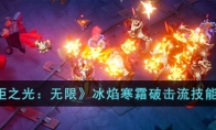 火炬之光无限冰焰寒霜破击流技能怎么搭配?游戏中冰焰有着多个流派,而且每个流派的技能都不一样,小编给大家带来的是冰焰寒霜破击流的技能推荐,伤害高而且技能帅,感兴趣的小伙伴一起来看看吧!《火炬之光:无限》冰焰寒霜破击流技能推荐流派:冰焰寒霜破击流流派介绍:非常适合新手的一个流派,技能帅气,而且伤害也很高,非常的炫酷。主动技能介绍:1、寒霜破击小技能连接石破天惊、狂蟒、元素融合、近战击退、精确打击等。2、生命源泉小技能连接药性残留、活化护甲、狂化野性。3、跃击小技能连接急速位移、硬化、间歇性爆发。4、公牛之怒小技能连接舍身、质量效应、持续时间延长、不息。5、怒火狂飙小技能连接质量效应、狂热、耗能转化。被动技能推荐:1、精密锐利加持小技能连接召唤雷霆之灵。2、精密冰寒领域能量不够就不用连接小技能。3、精密冰寒加持小技能