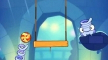 割绳子2地下道5-1关,第一关照例出了全新的地图元素——惊吓球。教学关卡,很简单。只要切绳子就好了。小怪兽会自己跳过去。然后再把糖果的绳子切断就好啦。1.这一关新出了一个惊吓球。开始垂直把惊吓球割断。 2.通过惊吓把小怪物弹到左上方平台上,然后割断糖果的绳子就过关啦。