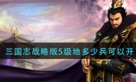 1、在三国志战略版游戏中,玩家想要打5级地的话起码需要4500-5000左右的兵力;2、如果玩家战损比较高的话,就先不要打5级地,在兵力上来后再去打; 3、推荐玩家正常做任务先升级主城,在开了5级地之后再去打5级地,如果战损还是高的话就继续打4级地升级。三国志战略版5级地多少兵可以开五级地需要准备兵力4500-5000,如果主力部队战损低就继续打好打的5级地,如果战损高,就刷4级地升主城升级。当然这是我们的兵种克制土地兵种时的数据,大家切记不要用被克制的兵种进行挑战。下限一般来说是可以战胜,但是损失较大。而上限则是损失兵力较少所需要的阵容兵力数值。一般来说当我们升到7级君王殿之后就可以解锁兵营,有了兵营之后就可以大大提升部队的兵力上限。这个时候才是刷5级地最好的时机。不仅更加轻松,消耗也非常少。