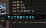 刘备战法搭配推荐:仁德载世:每回合稳定奶2人并有几率虚弱敌方1人,作为主将虚弱概率满级提高到25%,这个战法上面非常强力的虚弱效果存在,这个战法收益非常高,每回合奶队友且有概率虚弱敌方且不受控制状态影响。 三国志刘备战法搭配 刘备是一位兼备控制与医疗武将,高智力、统率成长,骑兵、盾兵两种S级适性,弓兵、枪兵两种A级适性。 战法分析 刘备自带指挥战法仁德载世。每回合治疗我军2人,有几率对敌军单体施加虚弱状态持续1回合,自身为主将时施加虚弱状态的几率提升。 仁德载世拥有稳定持久的治疗能力,可以为我方提供高效的续航。并且还有小几率控制敌军,造成虚弱后目标将会无法造成任何伤害。当成为主将时刘备的控制能力会得到大幅的提升,控制更加稳定。战法推荐 义心昭烈:我军任意单体受到治疗时,使其受到的主动战法伤害降低持续1回合,当自