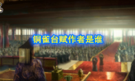 赤壁之战中,激怒周瑜的《铜雀台赋》是谁写的?不少玩家不知道这一问题的答案,接下来就让3DM小编给大家带来赤壁之战中,激怒周瑜的《铜雀台赋》是谁写的解答。小编推荐阅读:《三国志战略版》古战遗风答案大全汇总 铜雀台赋作者是谁答:《铜雀台赋》作者是曹植。曹植下笔成章,做出这部作品。《铜雀台赋》介绍《铜雀台赋》是东汉末年曹植在今河北省邯郸市临漳邺城铜雀台落成时所作,为汉赋中的经典作品,文辞华美。当时铜雀台建成后曹操召集文武在台前举行比武大会,又命自己的几个儿子登台作赋。其中曹植下笔成章,做出这部作品。临漳古称邺,西晋为避愍帝司马邺讳,将邺城易名“临漳”,因北临漳河而得名。三国两晋南北朝时期,邺城作为曹魏、后赵、冉魏、前燕、东魏、北齐六朝都城,居中国北方政治、经济、文化、军事中心长达四个世纪之久,创造了辉煌灿烂的历史文