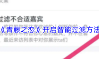 打开青藤之恋APP,点击右下角“我的”进入个人中心,找到并点击“设置”选项,在设置页面中选择“隐私设置”,将“智能过滤”右侧的开关开启,开启后系统会自动过滤掉不符合你择偶偏好(如年龄、地区、学历等)的用户信息,让你的匹配列表更精准。青藤之恋怎么开启智能过滤?1、打开青藤之恋,在我的页面,点击设置图标;2、然后点击页面的【隐私设置】,如图;3、点击打开【智能过滤不合适嘉宾】功能,即可完成开启不适配的人免打扰模式的操作了。以上就是小编带来的青藤之恋怎么开启智能过滤?开启智能过滤方法,更多相关资讯教程,请关注3DM手游网。