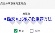 在酷安中发布好物推荐其实非常简单。你只需打开酷安App,进入“发现”页面后点击右上角的“+”图标,选择“好物”选项,接着上传商品图片、填写商品信息及推荐理由,最后点击“发布”按钮即可。这一功能可以帮助用户便捷、高效的进行好物分享推荐。酷安怎么发布好物?1、打开酷安app,点击右上角的加号,2、在发布页面点击好物选项,3、点击加号分享京东淘宝商品,4、输入推荐理由,添加好物照片,点击发布即可。以上就是小编带来的酷安怎么发布好物?酷安发布好物推荐方法,更多相关资讯教程,请关注3DM手游网。
