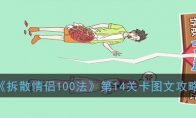 《拆散情侣100法》游戏中玩家需要把一对对情侣拆散!在各种场景下破坏一对对情侣的约会让他们分手!成功把情侣拆散即可顺利过关,海量的关卡等你前来挑战,但是很多玩家不清楚游戏关卡中的线索和道具在哪,那么下面由小编为大家带来《拆散情侣100法》第14关卡图文攻略,一起来看看吧。 《拆散情侣100法》第14关卡图文攻略 点击树上的鸟四次以上就是小编整理的关于《拆散情侣100法》第14关卡图文攻略的全部内容,更多游戏攻略请持续关注3DM手游网!