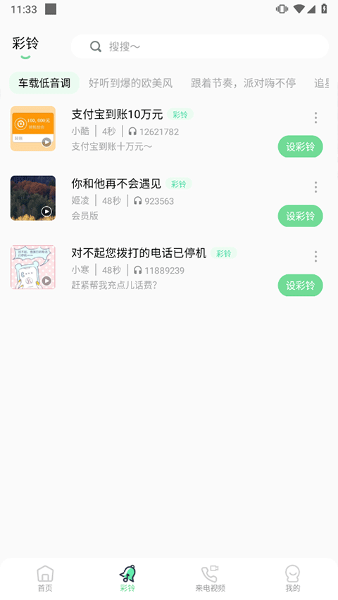 乐酷铃声app最新免费版是一款非常易于使用的手机铃声选择工具,这里提供了很多很好的音乐,作为铃声壁纸,以及通话视频,展示你的个性手机,各种资源可供选择,这样你就可以更好地选择你喜欢的,非常易于使用,有丰富的声学铃声效果,覆盖更方便的热铃声等,满足你的各种需求,给你终极的使用感。