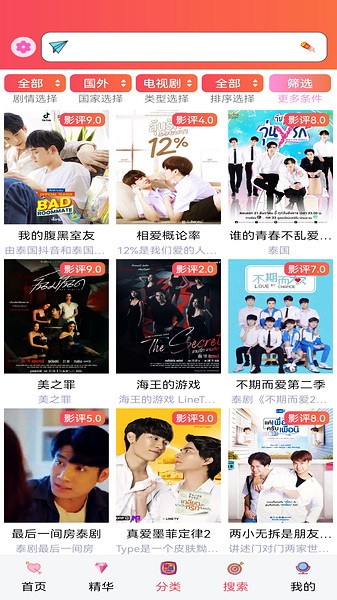 泰剧圈是一款受欢迎的在线泰剧观影软件,拥有丰富多样的泰剧资源可以实时更新,可以自由获取各种经典且热门的泰剧,方便用户在线看剧观影,还集合了其他国家的电影,电视剧等,可以直接搜索查找各种精彩影视,自由享受优秀的追剧服务和乐趣,还拥有全新的影视首页,可以免费在线选择感兴趣的影视剧来看,能完全满足用户的所有追剧需求,还提供离线下载缓存功能,允许用户自由下载缓存喜欢的电影和电视剧。