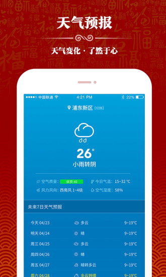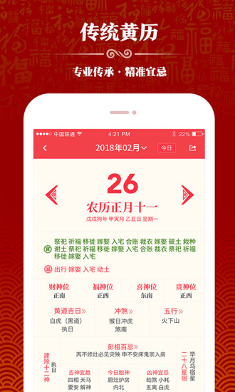 小编今天要为大家带来一款集万年历、农历、黄历、日常宜忌、节日节气信息查询,备忘记事、生活资讯于一体的工具应用《吉祥日历》app,这款软件以“连接时间与有趣的事物”为宗旨,致力于成为用户时间维度上的连接纽带以及基于传统文化的信息交流平台。有需要的朋友赶紧来下载体验吧!