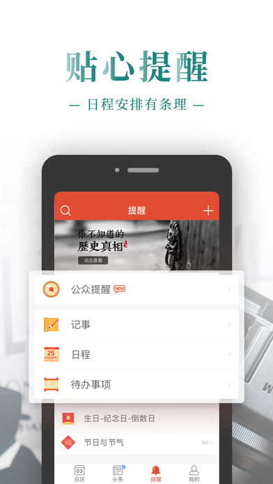 小编今天带来的是智能日历软件盘点,这些软件是款供用户看日历的手机软件,在这里可以查询每天的农历和阳历。当然,定时标注合适的作息时间是很方便的。除此之外,还有很多功能。提供天气、农历、节日、假期安排、历史上的今天等生活信息。还有活动、生日、纪念日、吉日查询、日期计算等常用工具。生活的小妙招,常见的小问题,你所关心的,我们都懂。