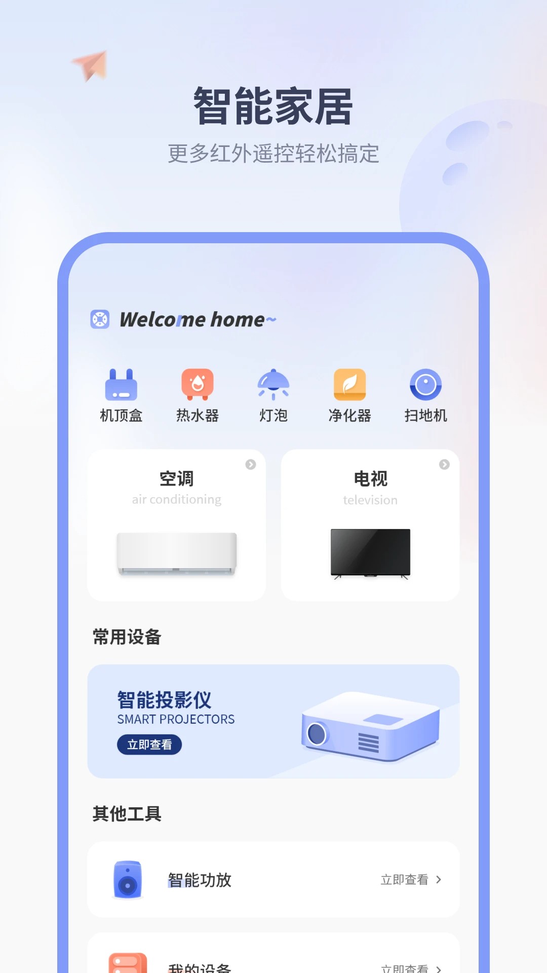 万能遥控器是一款全新的免费手机遥控器,拥有丰富多样的功能和选项,可以让用户轻松连接各种品牌的电视和空气,随时随地在线进行遥控,轻松享受优秀的服务,还具有简洁的界面设计,无需任何权限和经验即可轻松上手,方便用户及时控制各种智能设备,能完全满足用户的使用需求,还可以轻松兼容多个手机系统,允许用户直接设置各种控制选项,给用户带来全面的使用体验,有需要的用户欢迎来本站下载软件吧。