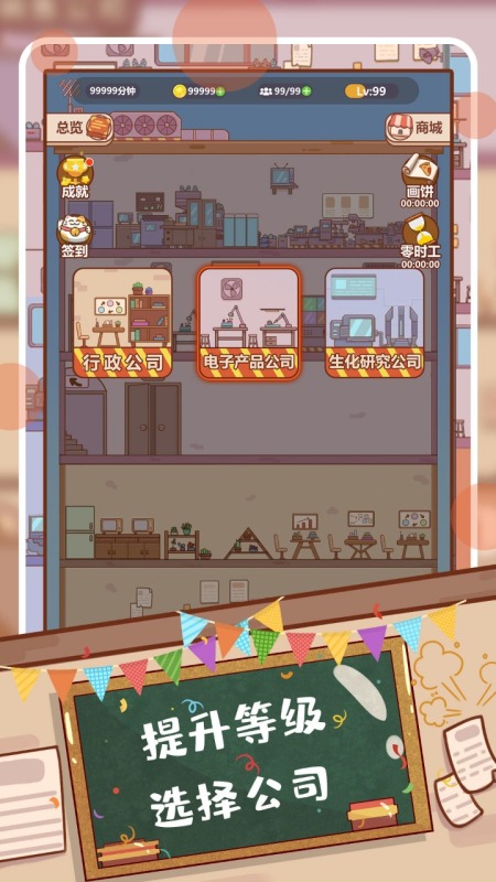 快乐打工人是一款引领模拟经营类游戏新潮流的佳作,玩家从一名基层员工开始,通过完成各种任务和挑战,提升自己的职业技能和地位。不同职业路径各具特色,玩家可根据自己的喜好和特长进行选择。随着职位的提升,玩家将有机会担任公司管理层,负责公司的运营、招聘、培训等工作。通过合理的策略规划,使公司不断发展壮大。游戏内设有丰富的社交系统,玩家可与同事、上司、客户等角色进行互动,建立人脉关系,获取更多资源和机会。