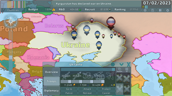 Dummynation2025官方正版是一款战争战略游戏,玩家和朋友可以在其中感受到非常好的游戏体验。在这里可以享受模拟政治游戏,使国家由弱变强,游戏性内容非常好。无论你在世界的哪个角落,都可以在游戏中与全球的玩家们一同竞技,挑战最强者。游戏中的发展路径不单一,玩家可以选择军事、科技、经济等不同的发展路线,找到适合自己的玩法。感兴趣的玩家现在就可以下载了。