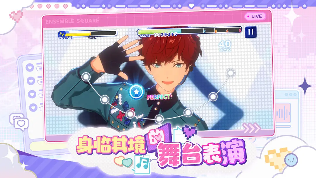 偶像梦幻祭2游戏中有四种难度模式供你选择。无论你是手残党还是音乐大师,都能找到属于你的舞台!同时还可以欣赏到奢华的3D MV表演,以及他们带来的个性化演唱会!在偶像梦幻祭2游戏中,玩家可以自由设定C位及其他表演成员,装扮搭配成员,享受其pick角色带来的专属SPP表演,闪耀独特光彩!感兴趣的朋友不要错过下载偶像梦幻祭2。融入沉浸其中,每分每秒都牵动心弦!